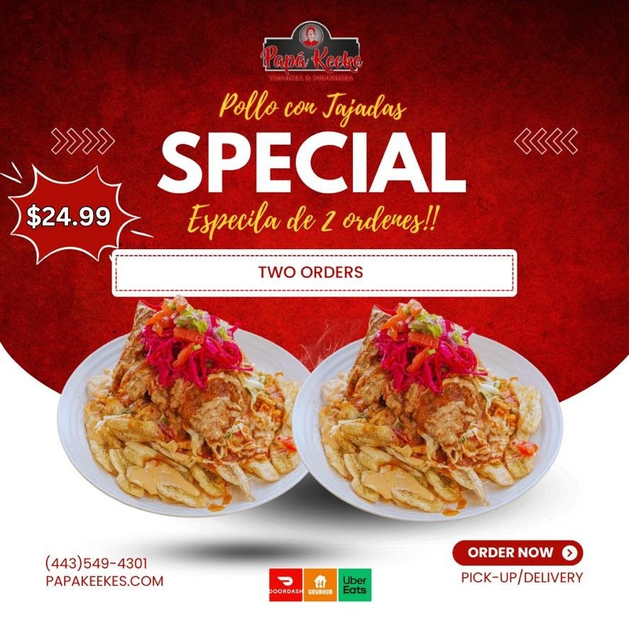 Honduras style fried chicken with fried green plantain topped with our homemade cabbage,pico de gallo and mayo sauce